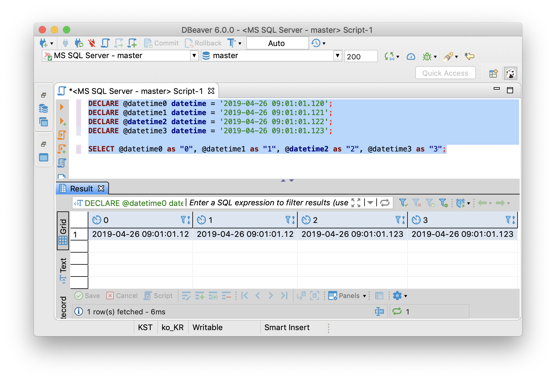 DECLARE @datetime0 datetime = '2019-04-26 09:01:01.120';