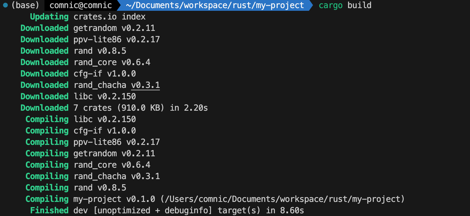 위 명령어를 실행하면, my_project라는 디렉토리에 Rust 프로젝트의 기본 구조가 생성됩니다.
