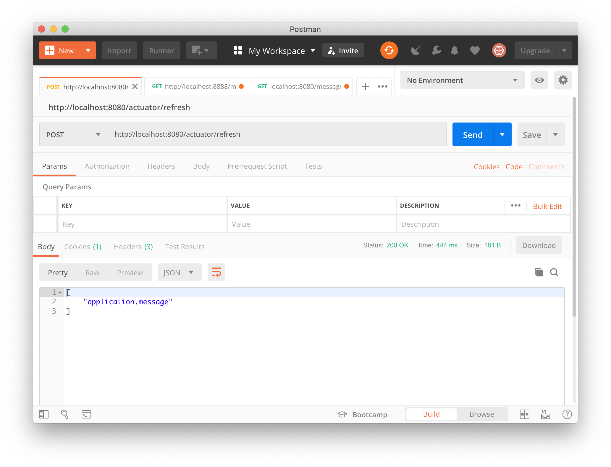 그런데, 다시 [http://localhost:8080/message]를 호출해 보면 값이 변하지 않은 것을 알 수 있습니다,