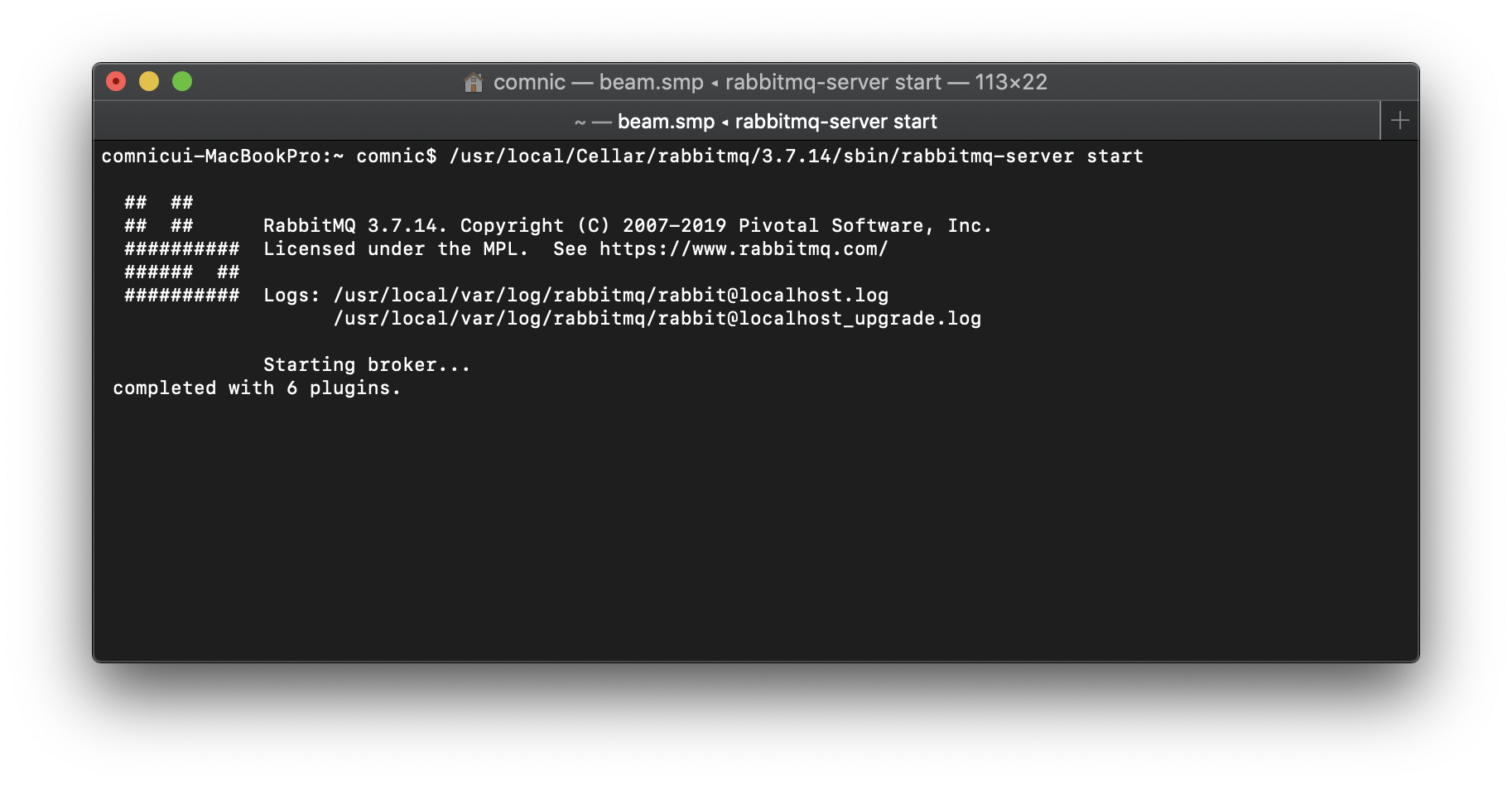 $ /usr/local/Cellar/rabbitmq/3.7.14/sbin/rabbitmq-server start