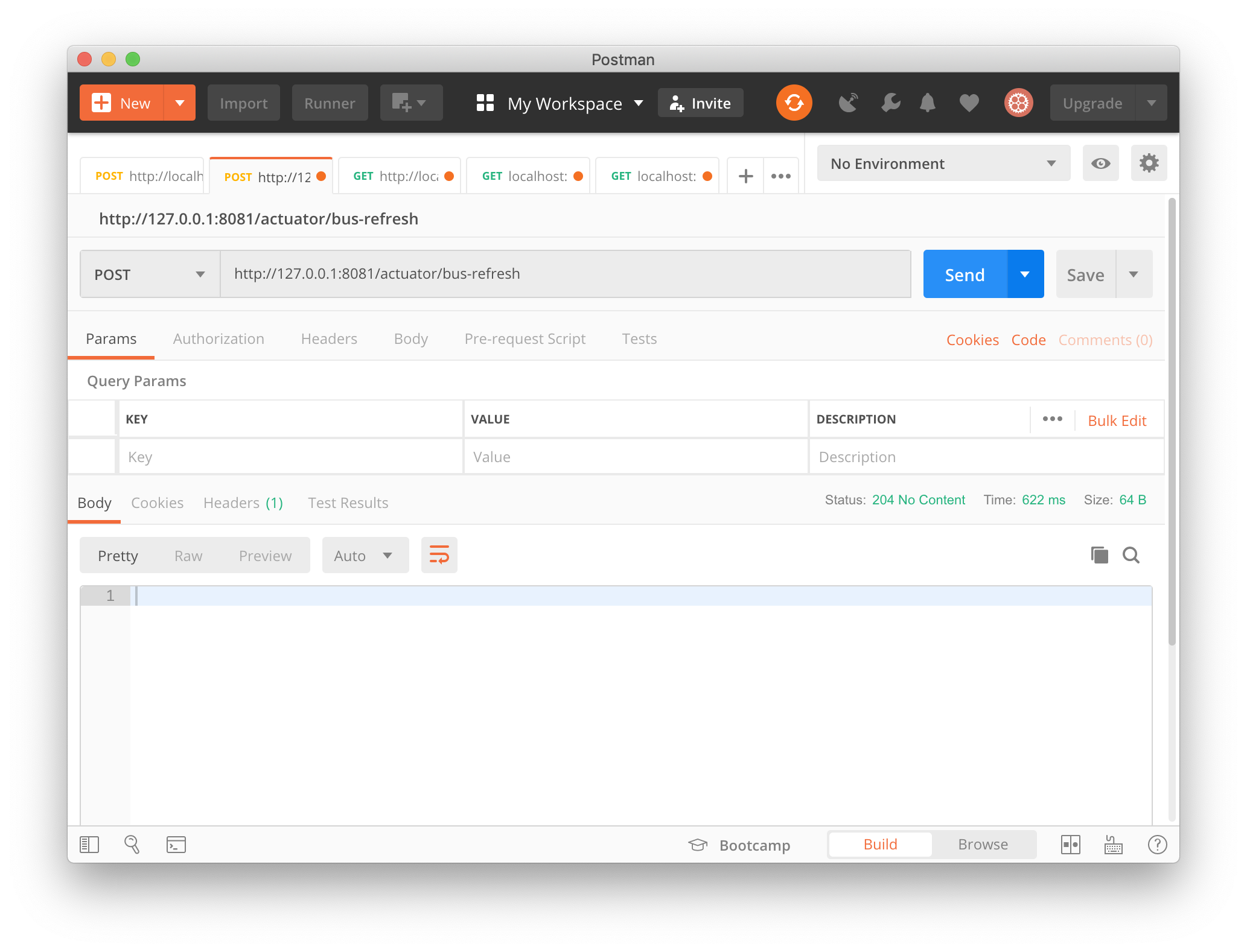 각 서비스의 /actuator/refresh를 POST로 호출하면 새로운 설정값이 적용된 다는 것은 지난번 글에서 확인 하였습니다. 이런 서비스가 100개가 떠 있다고 하면... 100번을 해 주어야 하는 것이겠죠?!